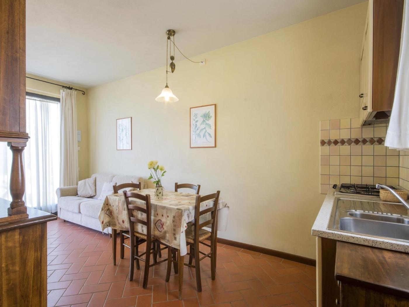 Avrete a disposizione una cucina con frigorifero, una TV e un bagno privato con bidet e doccia. Cè una zona salotto e una zona pranzo in tutte le unità .